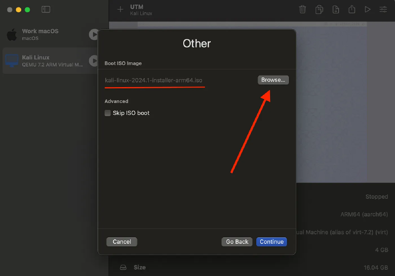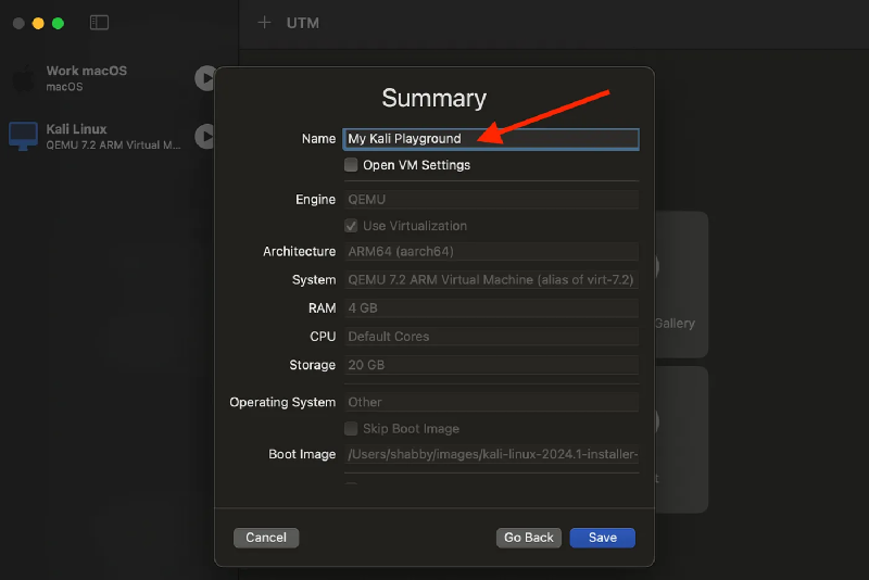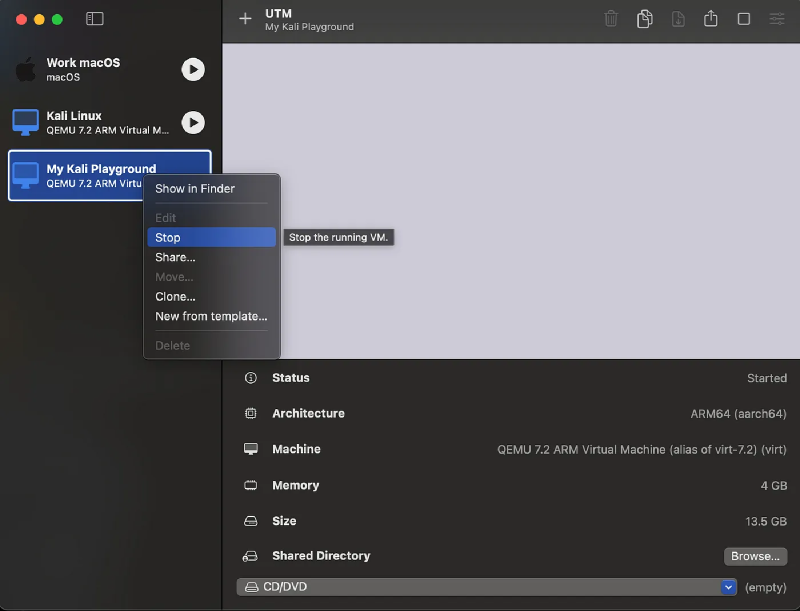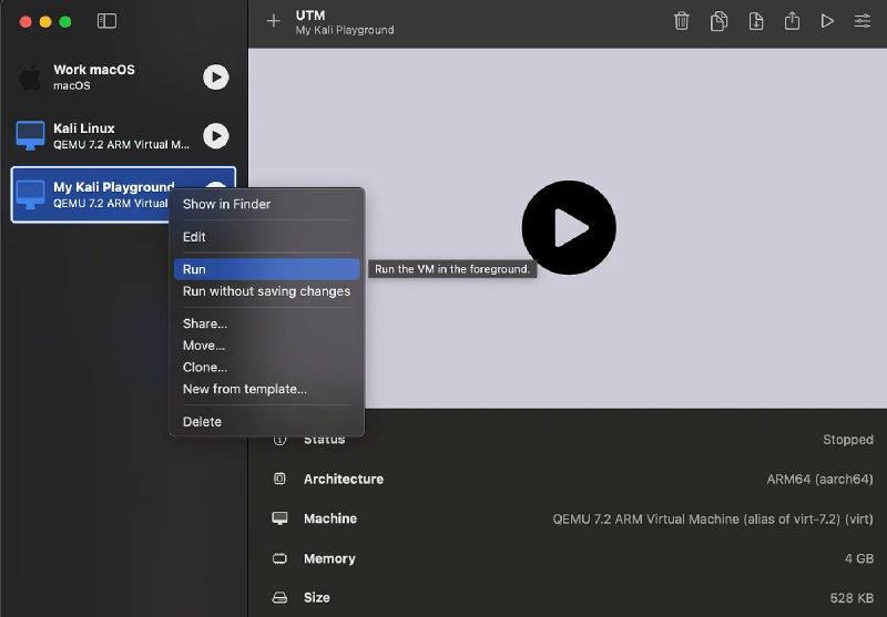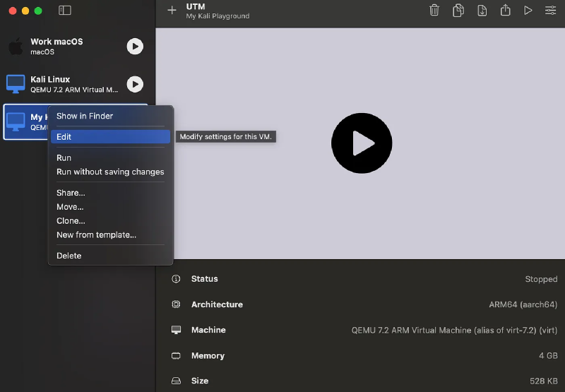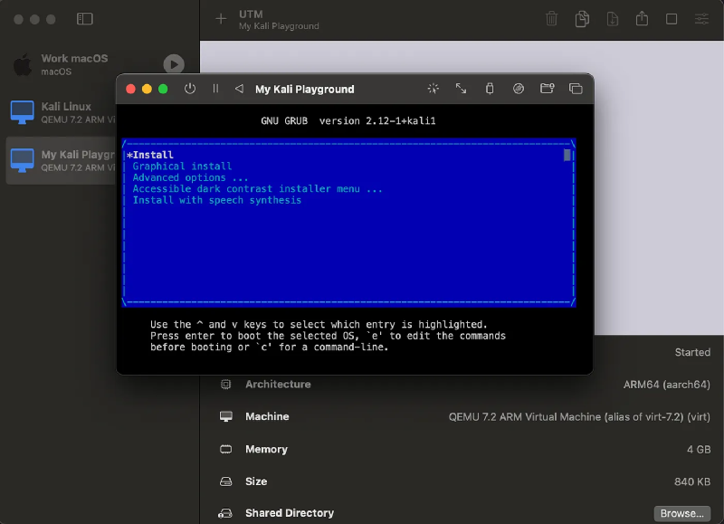 This guide is based on macOS 14.4, UTM 4.4.6 and Kali Linux 2024.1-arm64.